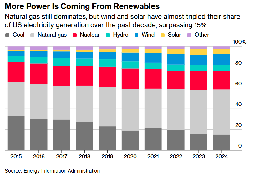 虽然特朗普政府对于可再生能源不屑一顾,但是股票市场仍然非常看好可再生能源前景,认为AI驱动的新周期已开启,并且认为这种清洁属性能源才是全球能源体系的未来,毕竟煤炭与石油等传统资源不符合全球政府的碳减排雄心壮志且总有彻底枯竭的那一天。